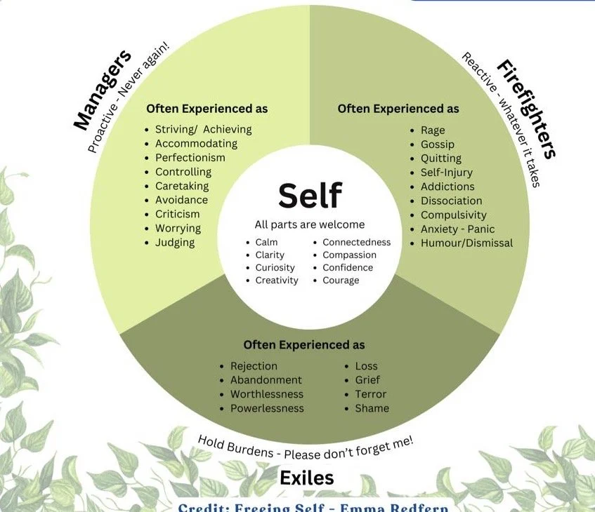 Parts don't choose their roles. They are forced into them by trauma and attachment injuries ie the moments when life felt unsafe, unpredictable, or too much. Some become preemptive protectors, the Managers, working hard to stop pain before it arrives. Others become reactive protectors, the Firefighters, rushing in when pain breaks through anyway. And underneath them all live the Exiles ..the burdened, vulnerable parts carrying the original wounds. Here's what IFS insists, and what makes it different from almost every other approach: there are no bad parts. Every part, however extreme its behaviour, has a positive intention. The goal is never to eliminate a part but to help it find its natural, non-extreme role once it's been unburdened.